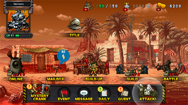 合金弹头进攻是一款融合了合金弹头元素与塔防玩法的策略射击游戏,玩家将扮演一名勇敢的战士,挑战被魔登军占领的据点,解救被俘虏的战友,寻找宝藏等多样任务,可以收集道具来培养喜爱的单位,通过进化、升级和装备道具解锁技能,打造强力的战斗单位。