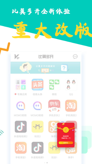 比翼多开无论是微信还是其他任何应用,只要是你需要的都能轻松实现多开,这意味着你可以在同一个手机上同时登录多个账号,无需频繁切换或携带多部手机大大提高了工作效率,而且支持的应用数量是无限的,你可以根据自己的需求随意添加或删除多开应用。
